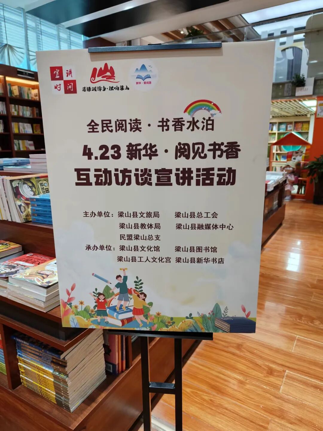4月23日,以“读书 让人生更美好”为主题的“我们的中国梦-文化进万家”世界读书日活动在梁山新华书店举行,活动由梁山县文化和旅游局、梁山县融媒体中心、民盟梁山总支、梁山县总工会、梁山县教体局共同主办,由梁山县文化馆、梁山县图书馆、梁山县工人文化宫、新华书店承办,60余名读书爱好者参加了本次活动。