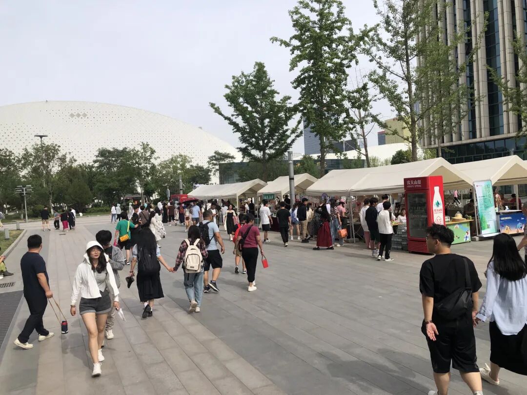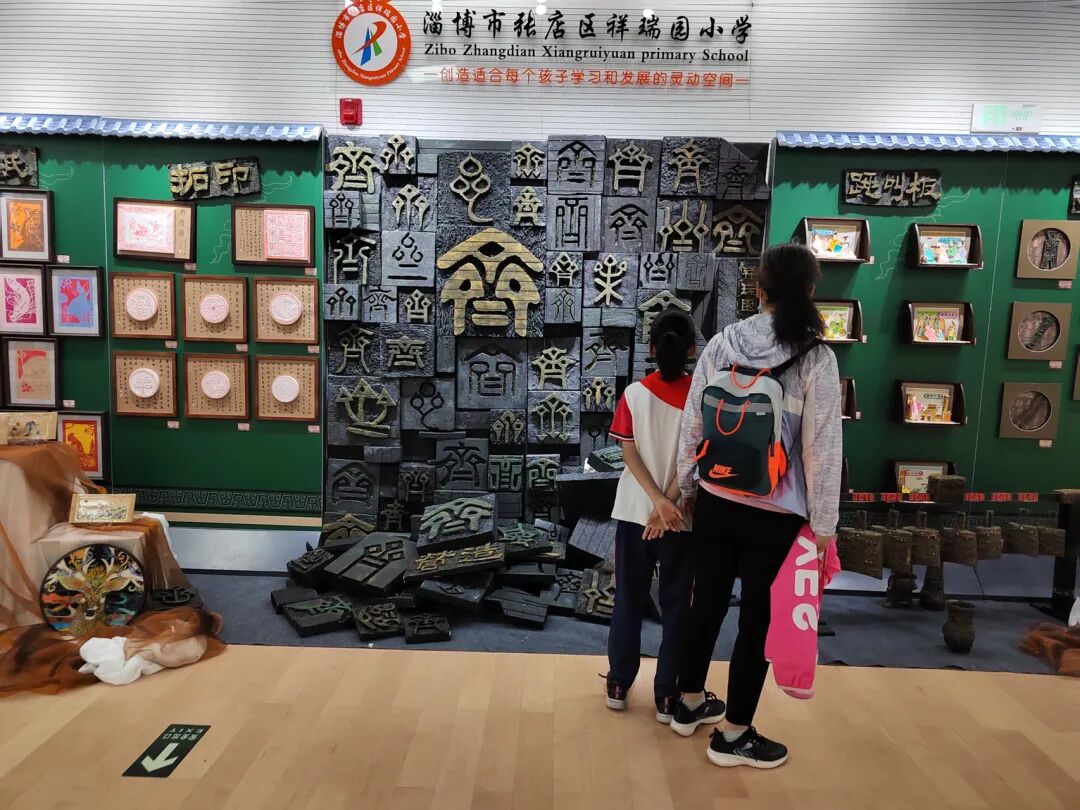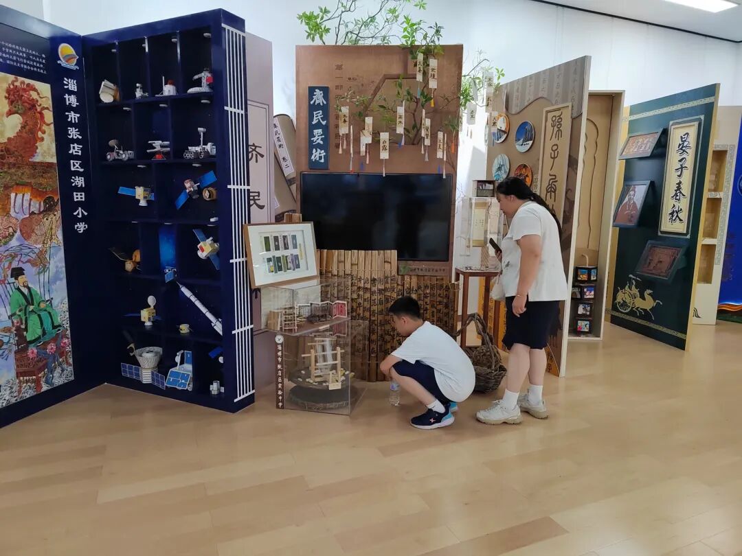 6月9日,淄博市文化馆三楼非遗展厅研学、四楼非遗传承校园成果展,馆外非遗市集依旧火热,孩子们利用假期来文化馆充电、打卡,沉浸式体验中华优秀传统文化知识。