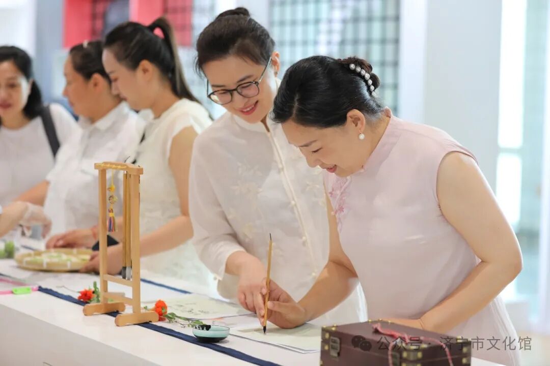 五月初五,六月九日,时逢端午。济宁市文化馆与济宁市女书画家协会联合打造二十四节气雅集活动在文化馆文创空间举行,仲夏端午时节,在艺术的空间,席地落坐闲聊,随乐入空灵,穿越千山驰万水,浅品香茗,闲话桑麻,静坐花间,研磨,调色,润笔,细画绢扇......寥寥几笔,绘浮世深浅,描夏日繁花……,带着新绿的气息,短暂且美好。