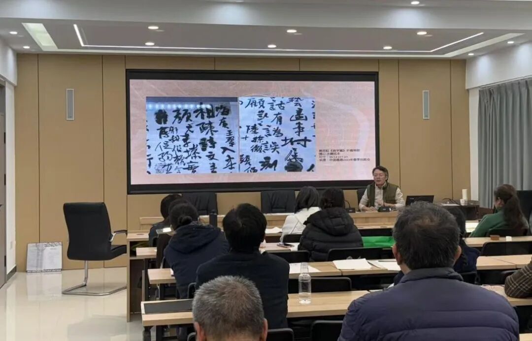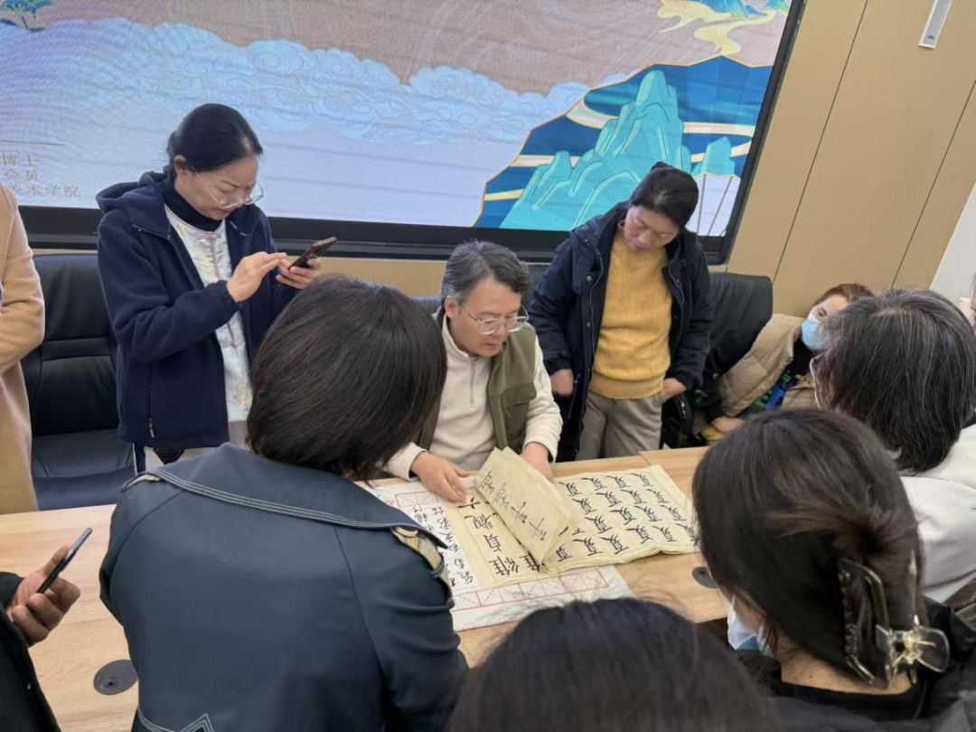 活动现场,陈钝之导师以“临摹到创作的转化”为核心脉络,层层深入展开讲解。他首先清晰阐释了“仿作”的内涵与价值,帮助学员理清临摹与创作之间的过渡逻辑;随后结合自身丰富经验,细致分享了书法工具材料的选择与应用技巧,从笔墨纸砚的适配到特殊材质的运用,干货满满。在创作教学环节,陈导师重点解析了书法创作的多元形式与核心构成要素,从章法布局、字法搭配到墨色变化,逐一拆解创作要点,让学员对书法创作有了系统认知。