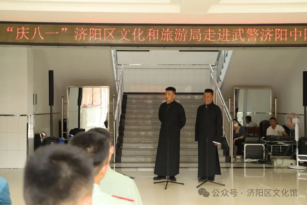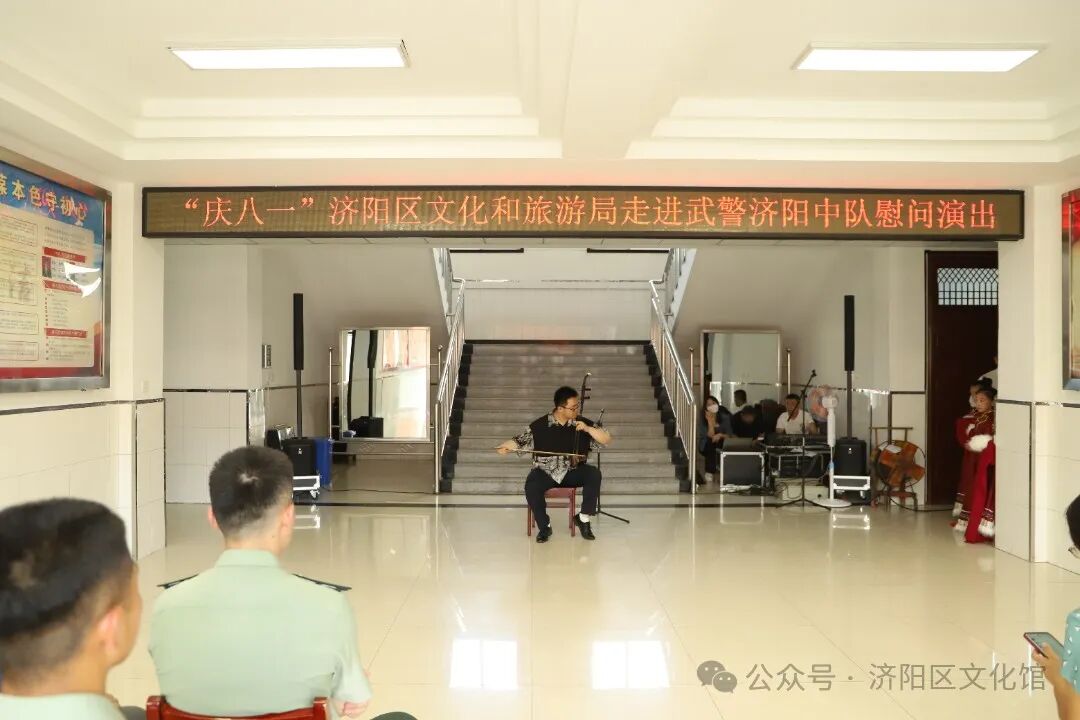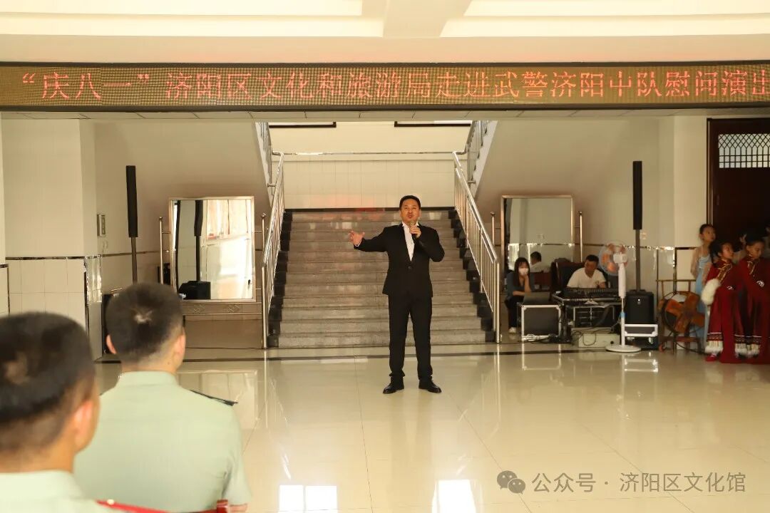 为热烈庆祝中国人民解放军建军97周年,7月30日上午,济阳区文化和旅游局文艺志愿服务队走进武警济阳中队成功举办庆“八一”慰问演出活动。此次活动旨在向武警官兵表达崇高的敬意并送上节日的祝福,为进一步巩固军民团结的良好关系注入文化力量。