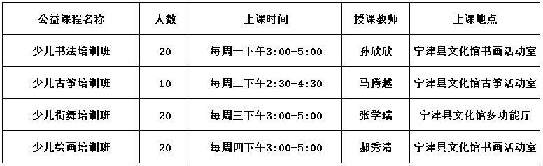 7.若出现报名人数未达到核定开课人数要求,或遭遇不可抗力因素,宁津县文化馆将灵活调整课程项目及时间,并及时通知到每位学员。