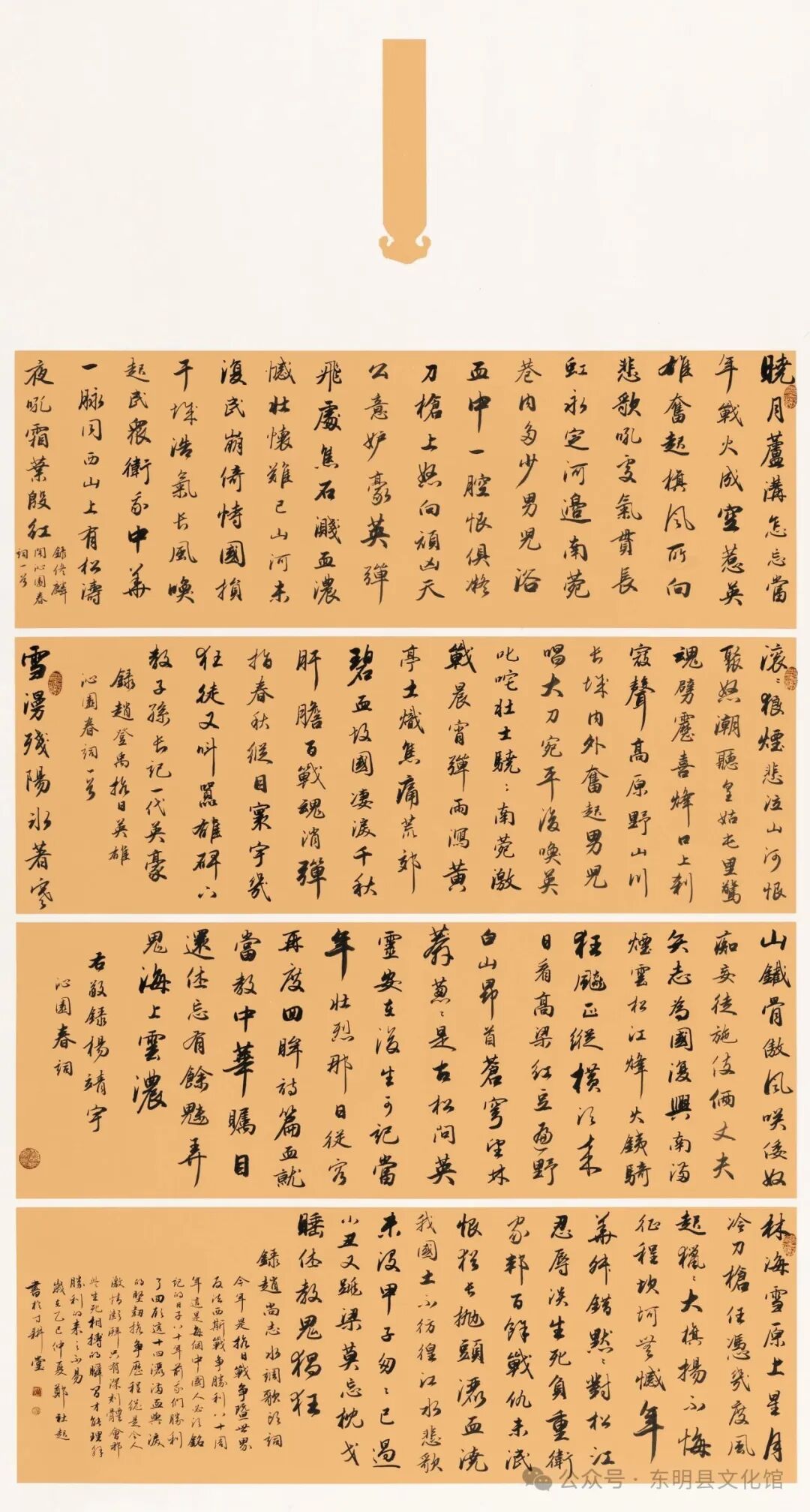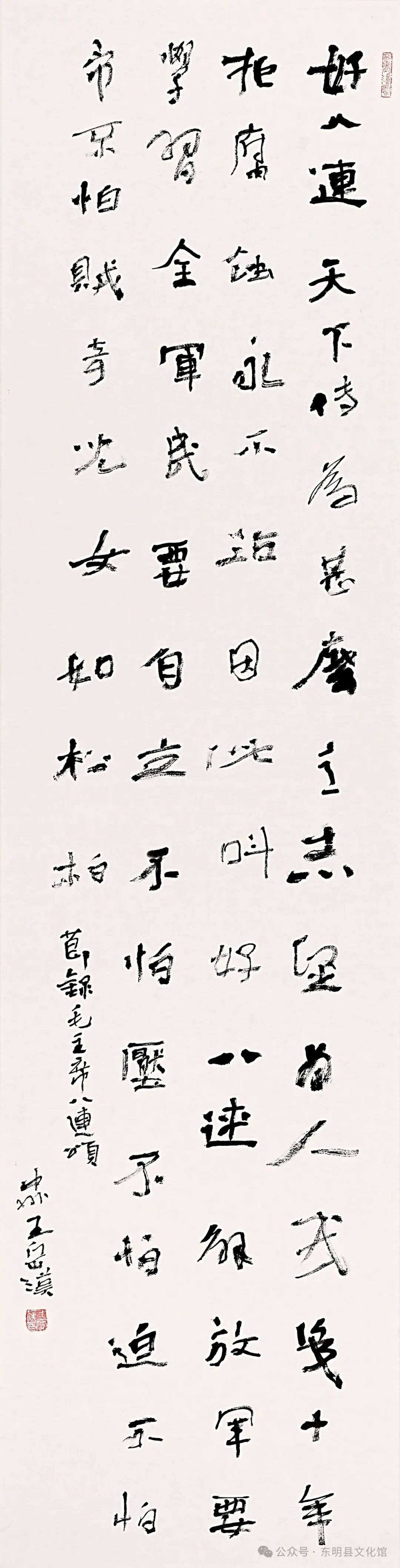 此次展览,东明诸贤以笔墨为媒,将抗战之精神、军民之深情,倾注于字里行间。观其书,或如金戈铁马,气吞万里如虎,再现当年战场之激烈;或如春风化雨,润物无声,展现军民鱼水之深情。笔走龙蛇间,是对先辈的缅怀与敬仰;墨香四溢处,是对和平的珍视与向往。