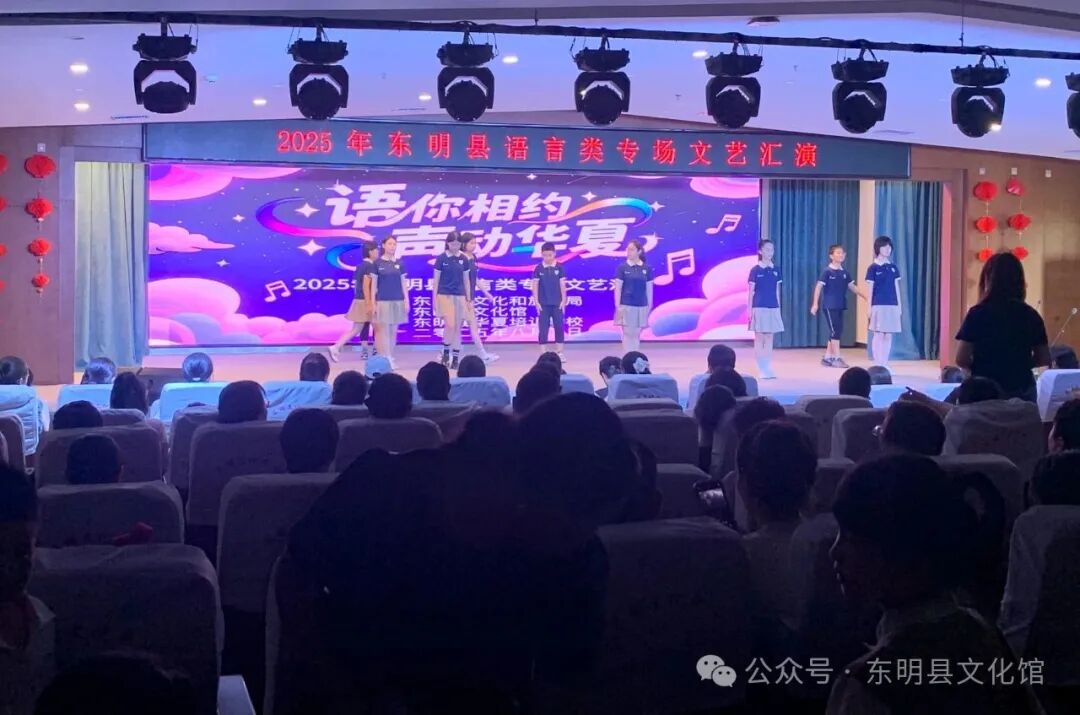 为丰富和活跃我县少年儿童的暑期文化生活,营造欢乐、积极、向上的假期氛围,充分展示我县少年儿童的语言才华和表演能力,2025年8月2日下午,由东明县文化和旅游局主办,东明县文化馆、东明县华夏培训学校承办的“语你相约·声动华夏”2025年东明县语言类专场文艺汇演在县文化中心多功能厅圆满举办。