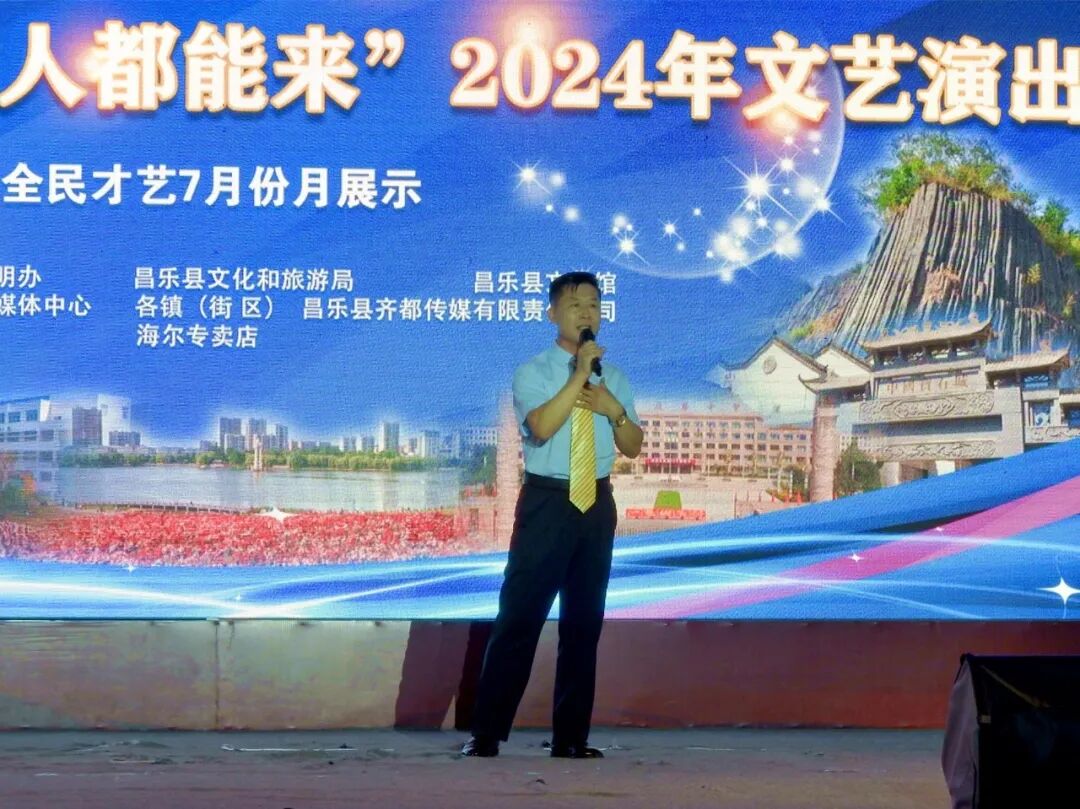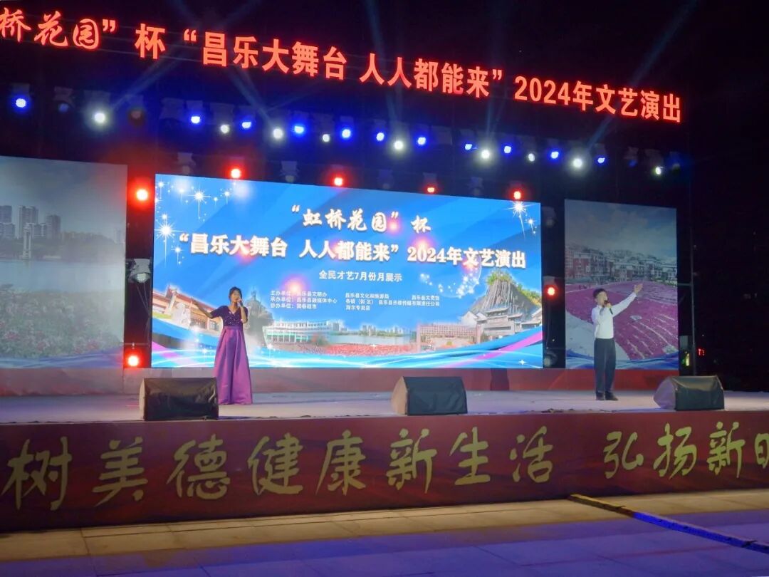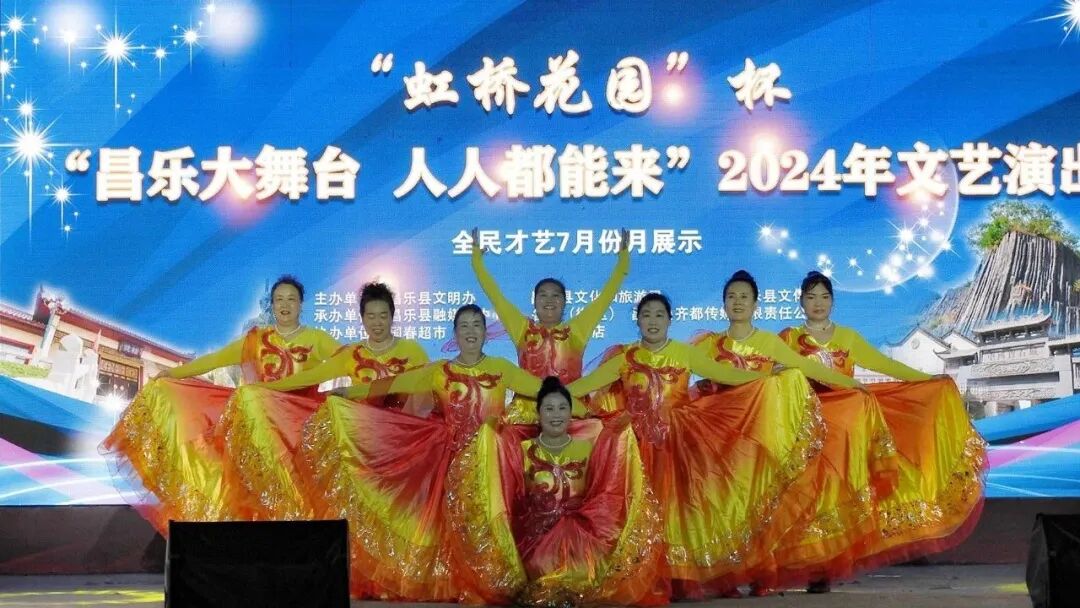 7月30日晚7点30分,由昌乐县文明办、昌乐县文化和旅游局、昌乐县文化馆主办,昌乐县融媒体中心、各镇(街、区)、昌乐县齐都传媒有限责任公司承办,国春超市、海尔专卖店协办,虹桥花园独家冠名的“虹桥花园”杯“昌乐大舞台 人人都能来”2024年全民才艺7月份月展示活动在市民文化体育公园激情上演,来自各镇(街、区)的13个演出节目给观众带来了一场精彩的视觉盛宴。