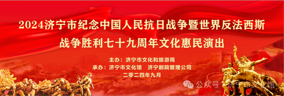 9月3日,为纪念中国人民抗日战争及世界反法西斯战争胜利79周年,由济宁市文化和旅游局主办,济宁市文化馆、济宁剧院管理公司承办的“抗战胜利79周年”文化惠民演出(第二场)在“市民大舞台”成功举办。