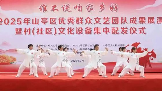 为集中展示全区群众文艺团队建设成果,丰富群众精神文化生活,推动基层文化事业繁荣发展,9月29日,由中共山亭区委宣传部、中共山亭区委社会工作部、山亭区文化和旅游局、山城街道党工委、办事处主办,山亭区文化馆、各镇街公共文化服务中心承办。山亭区优秀群众文艺团队成果展演活动在山城街道柴林社区文化广场成功举办。