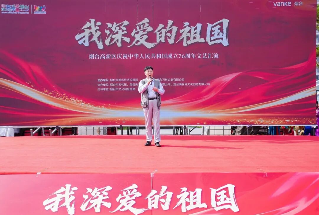 秋高气爽,歌声飞扬。10月1日上午,烟台高新区万科天琴湾草坪广场上洋溢着一派喜庆祥和的节日气氛,“我深爱的祖国”——烟台高新区庆祝中华人民共和国成立76周年文艺汇演在这里隆重举行。