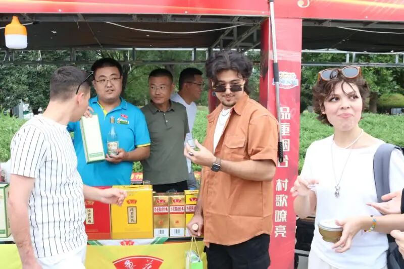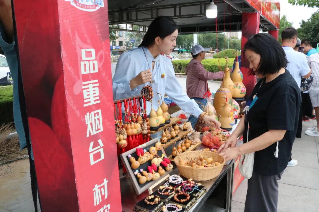 当日下午,五龙广场上摆起了热闹的特色市集。各参赛区市的特色农产品齐聚莱阳。海阳的雷乡合菜、栖霞的苹果、莱山区的玫瑰精油以及我市的“一枝笔”莱阳梨汁、鲁花“梨香白”酒、莱阳慈梨膏、“梨乡小甑”酒等产品都获得广泛关注,市民穿行在各展位间,品尝选购各类物品,现场人头攒动,热闹非凡。热闹的市集还吸引了来自俄罗斯、土库曼斯坦等国家的留学生驻足围观,他们和本地市民一起逛展位、选好品、赏非遗,感受烟台的鲜美农品和文化魅力。