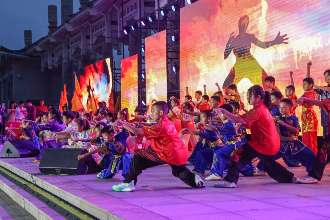 当日18时,夜幕降临,五龙广场陷入了欢乐的海洋。在气势恢宏的螳螂拳表演《精忠报国》中,比赛正式拉开帷幕。螳螂拳作为起源于莱阳的国家级非物质文化遗产,从螳螂捕食的动作演化而来,既有细腻灵活的手法,也有结合了太极八卦阵型的复杂步法,具有深厚的历史传承和浓郁的地方特色。