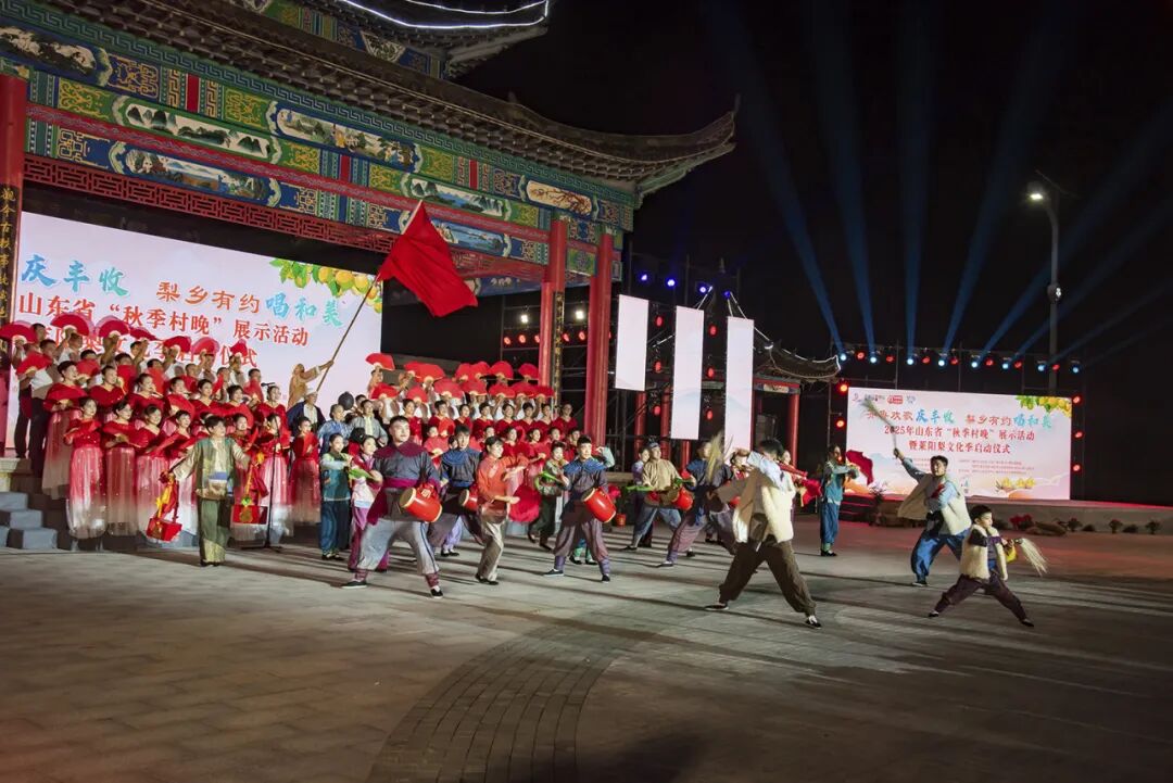 在2025年国庆、中秋佳节即将到来之际,9月28日晚,照旺庄镇梨乡风情旅游区灯火璀璨、歌声飞扬,2025年山东省“秋季村晚”展示活动暨莱阳梨文化季启动仪式在此隆重举行。活动以“齐鲁欢歌庆丰收,梨乡有约唱和美”为主题,由山东省文化和旅游厅主办,山东省文化馆、烟台市委宣传部、烟台市文化和旅游局、莱阳市人民政府承办,旨在推动优质文化资源直达基层,繁荣乡村文化,助推产业融合,为乡村全面振兴注入新活力。来自全省15地市的文旅代表与千余名观众齐聚一堂,共同见证了这场乡村文化盛会。