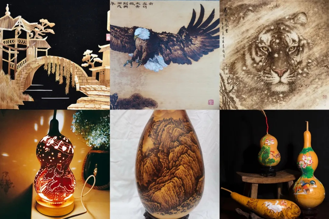 烫画又称烙画、火笔画,即用烙铁在物体上熨出烙痕作画。烫画注重“意在笔先、落笔成形”,不仅有中国画的勾、勒、点、染等表现手法,还能烫出丰富的层次与色调。淄博烫画主要通过传承人“祖传+师传”授艺,再通过非遗进校园向学生传授技艺,向社区爱好者传授技艺,帮助社会弱势群体掌握烫画制作技艺。