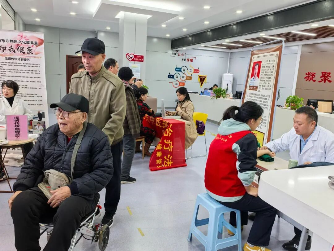 张店区文化馆还组织张店区医药类代表性非遗传承人分别走进山东理工大学老干部活动中心、公园街道沁园社区和马尚街道祥瑞花园社区,举办了 “我们的节日・重阳节‘非遗有爱 久久重阳’” 非遗义诊活动。
