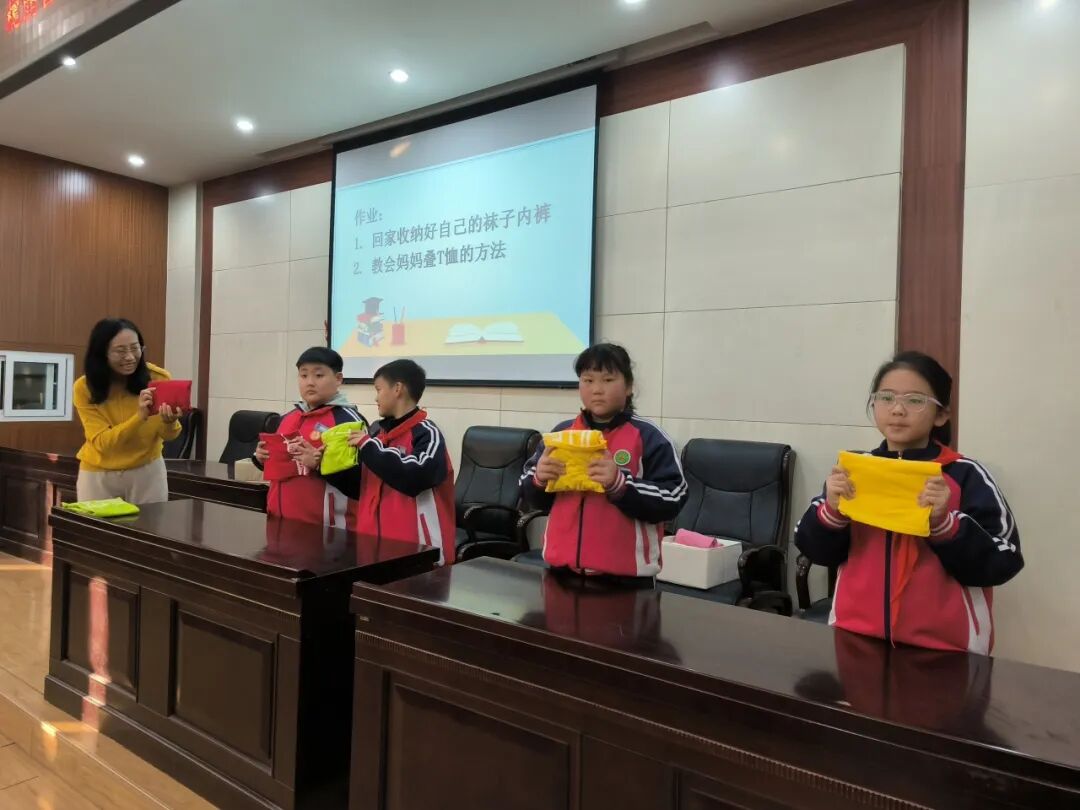 理论讲解结束后,在主讲老师的悉心指导下,同学们了解了常见衣物的折叠技巧和分类存放方法,并学会了规划整理书桌与衣橱的实用技能。通过逐步实践,同学们不仅掌握了书包整理收纳的方法,还能高效规划个人物品空间,体会到了合理收纳带来的便捷与高效。