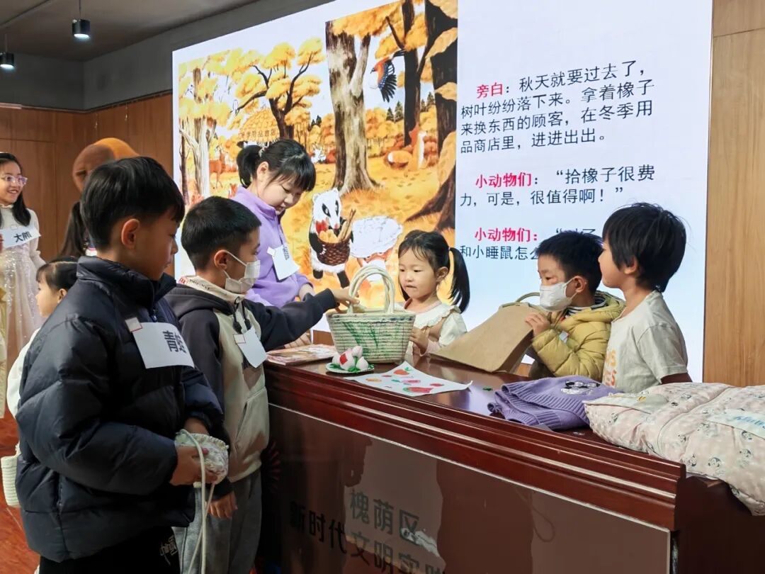 绘本分享结束后,情景剧演绎成为活动的亮点。在槐图故事妈妈的引导下,小读者们纷纷上台,根据绘本内容再现了这个温馨的故事。大家在分享中不仅深化了对绘本内容的理解,更锻炼了逻辑思维与语言表达能力。
