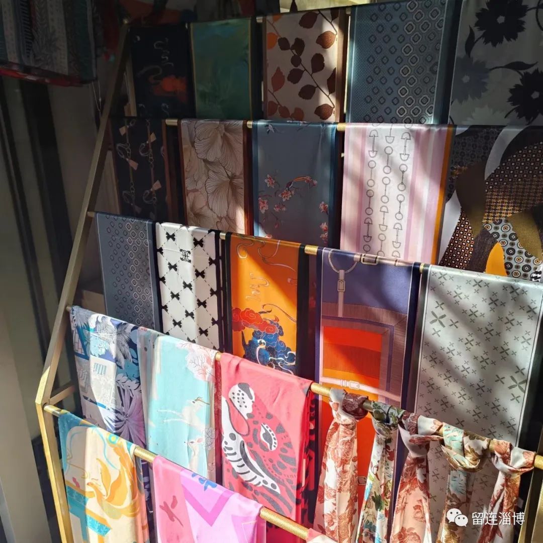 古老的丝织印染技艺在传承中不断发展,相关产品成为文旅融合发展之下颇具特色的地区“代表”。通过周村丝绸染织技艺生产的提花丝绸面料、织锦画、草木染丝巾等产品,不仅传承、保护和发展了传统技艺,也通过游客将传统文化的魅力传递至更远的地方。