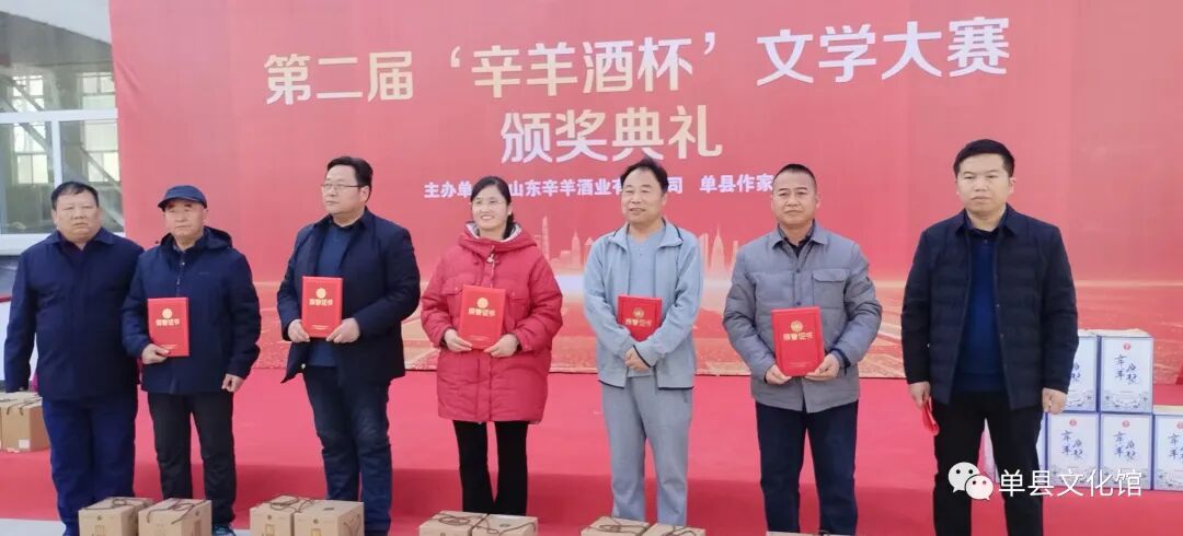 金秋刚过,硕果累累;初冬季节,微风吹拂!2023年11月19日上午,蔡堂镇重点企业山东辛羊酒业有限公司和单县作家协会联合主办的第二届“辛羊酒杯”文学大奖赛颁奖典礼在此隆重举行!蔡堂镇党委、政府对大奖赛的圆满举办和各位作者成功获奖表示热烈的祝贺!