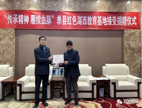 2023年11月29日下午孔凡凯的儿子孔祥民将其父生前写作和收藏的红色书籍1730本,无偿捐赠给单县红色湖西教育基地。