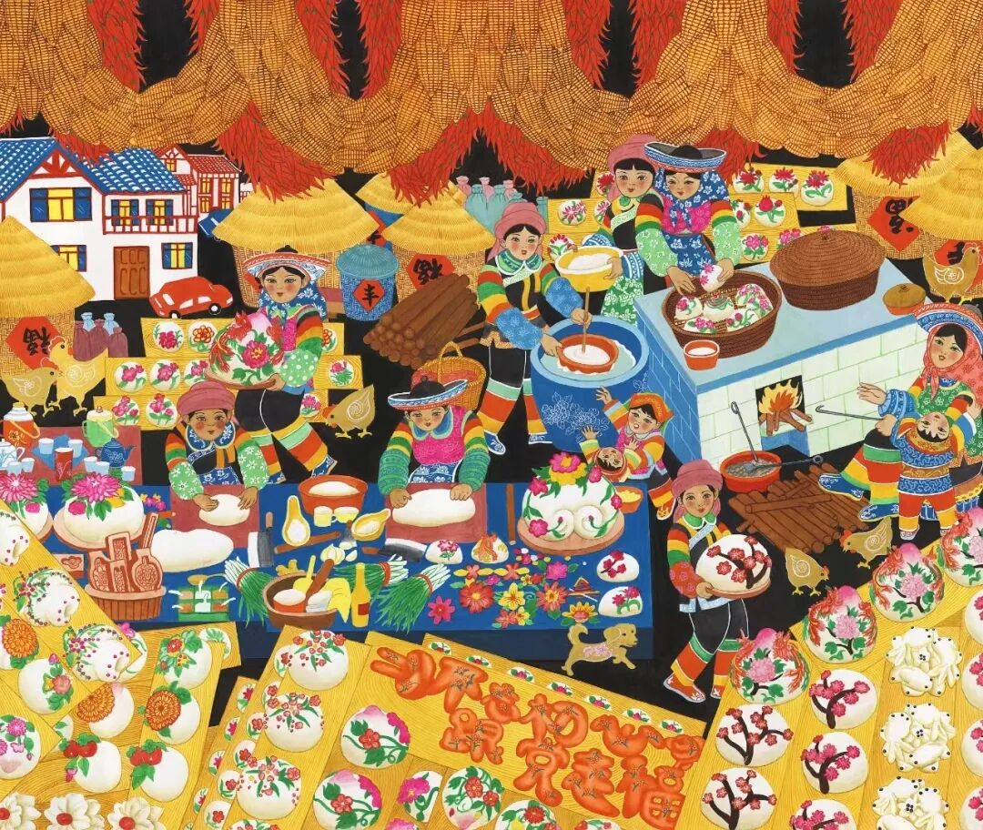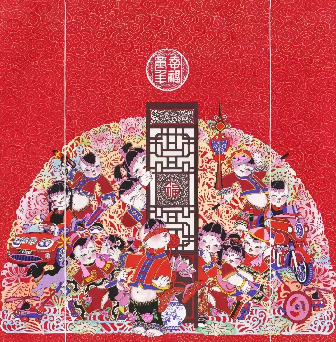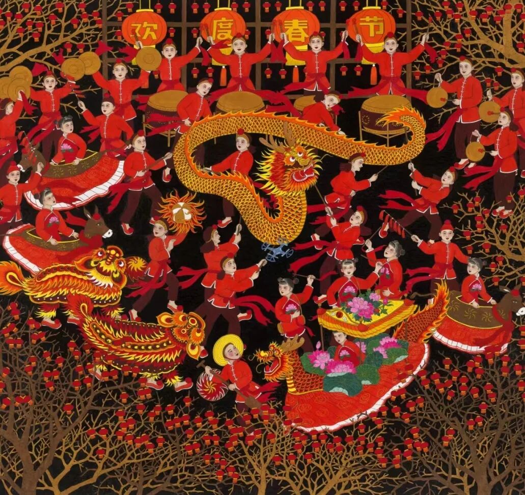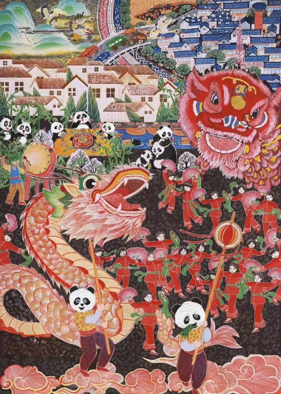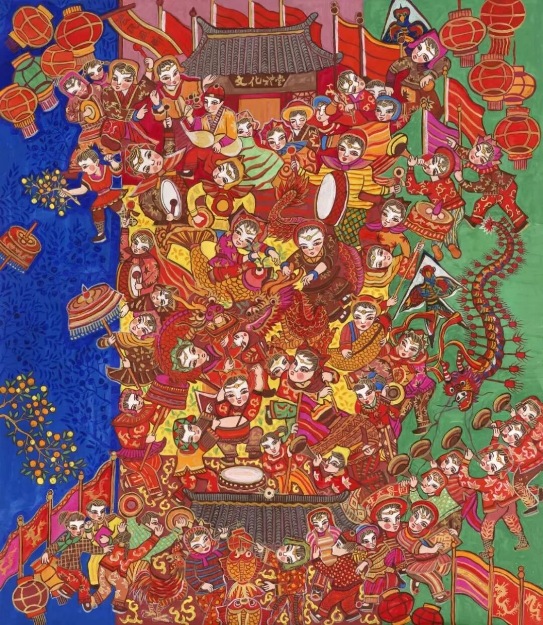 春夏秋冬的丰收场景、街巷市井的热闹生活、大江南北的民俗风情,艺术爱好者们通过木版年画、新年画、农民画以及具有年画元素的插画等多种表现形式,展现出年画中蕴含的中华优秀传统文化魅力。志愿者与孩子们共同欣赏书画,了解书画所呈现的不同主题,引导着孩子们发挥自己的创造力和想象力,以春节为主题,结合龙年“福”文化构想着自己心中的新年图画。