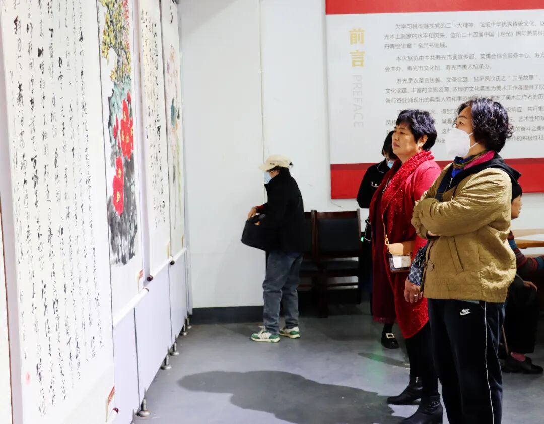 为学习贯彻落实党的二十大精神,弘扬中华优秀传统文化,讴歌寿光人民意气风发的时代精神,描绘寿光发展的隽永简章,充分展现寿光本土画家的水平和风采,4月26日上午,“菜乡举盛会 丹青绘华章”庆祝第二十四届中国(寿光)国际蔬菜科技博览会全民书画展隆重开幕,吸引众多书画爱好者参观学习,本次展览由中共寿光市委宣传部、菜博会综合服务中心、寿光市文化和旅游局、寿光市文学艺术界联合会、弥河生态省级旅游度假区管委会主办,寿光市文化馆、寿光市美术馆联合举办。