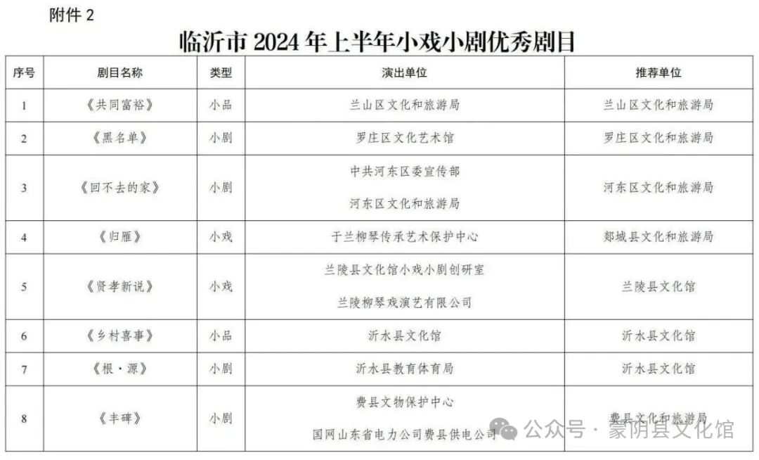 2024年,蒙阴县文化和旅游局依托我县丰厚文化资源、突出群众主体地位,在全县实施群众性小戏小剧创作展演工程。围绕红色文化、传统文化和现实题材,创作推出一大批优秀作品。