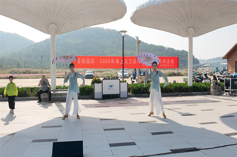 本次演出节目由区文化文物服务中心工作人员与本地优秀文艺志愿者共同演绎,将舞台搭建在风光旖旎的景区内,通过激昂嘹亮的声乐演唱、优美动人的民族舞蹈以及悠扬婉转的器乐演奏等多种艺术形式,为现场观众献上了一场充满爱国情怀与海岛风情的文化盛宴。