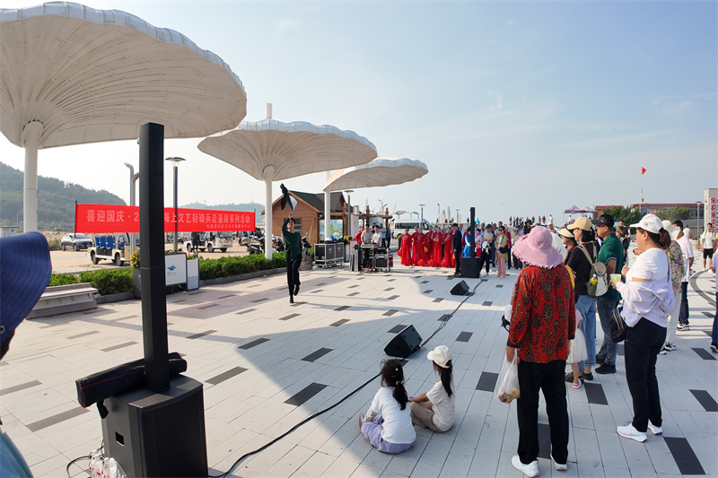 金秋十月,海风送爽。为进一步丰富国庆期间海岛居民和游客的精神文化生活,10月1日当天,长岛综试区文化文物服务中心组织“海上文艺轻骑兵志愿服务队”将精彩纷呈的文艺演出送至景区一线,让艺术与山海美景交相辉映。