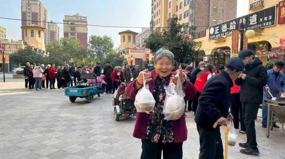 考虑到老年朋友的饮食需求,大锅菜特意炖得软烂入味、咸淡适中,每一口都饱含着对长辈的贴心与关怀。志愿者们将热腾腾的大锅菜分装到餐盒中,逐一分发到前来领取的老人手中,还细心叮嘱大家趁热食用。拿到饭菜的老人们脸上笑开了花,一边品尝着鲜香的菜肴,一边和邻里唠着家常,言语间满是满足。
