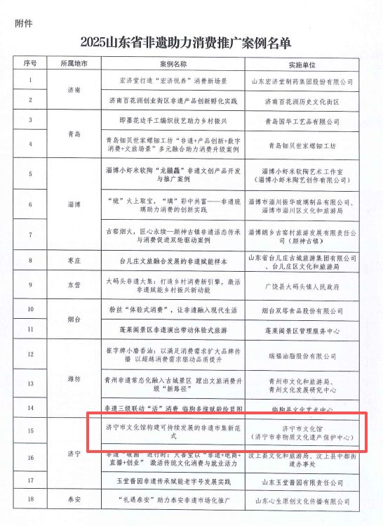 喜报!我馆1案例入选“2025山东省非遗助力消费推广案例名单”
