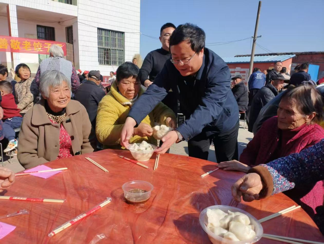 活动现场,支部书记带领村干部、党员志愿者和热心村民分工明确、默契配合,揉面、擀皮、调馅、包饺子,动作娴熟麻利。一张张薄薄的饺子皮,裹进鲜美的馅料,也包进了对老人们的尊敬与关爱。不一会儿,一盘盘饱满圆润的饺子陆续出锅,热气腾腾的饺子端到老人们面前,大家围坐在一起,边吃边聊,脸上洋溢着幸福的笑容。“这样的饺子宴太暖心了,不仅吃到了美味的饺子,还感受到了镇里对我们老年人的重视和关怀。”一位白发苍苍的老人笑着说道。