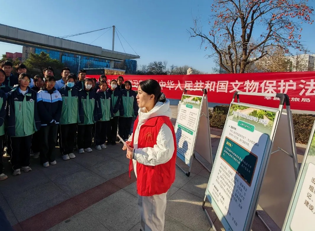 为深入宣传贯彻新修订的《中华人民共和国文物保护法》,增强青少年文物保护法治观念与历史文化遗产保护意识,聊城市莘县文化和旅游局走进莘县实验高级中学,组织开展了以“守护历史印记,传承中华文脉”为主题的普法宣传教育活动。通过“校园宣讲+实地观摩”的形式,为同学们上了一堂生动而深刻的文物保护课。