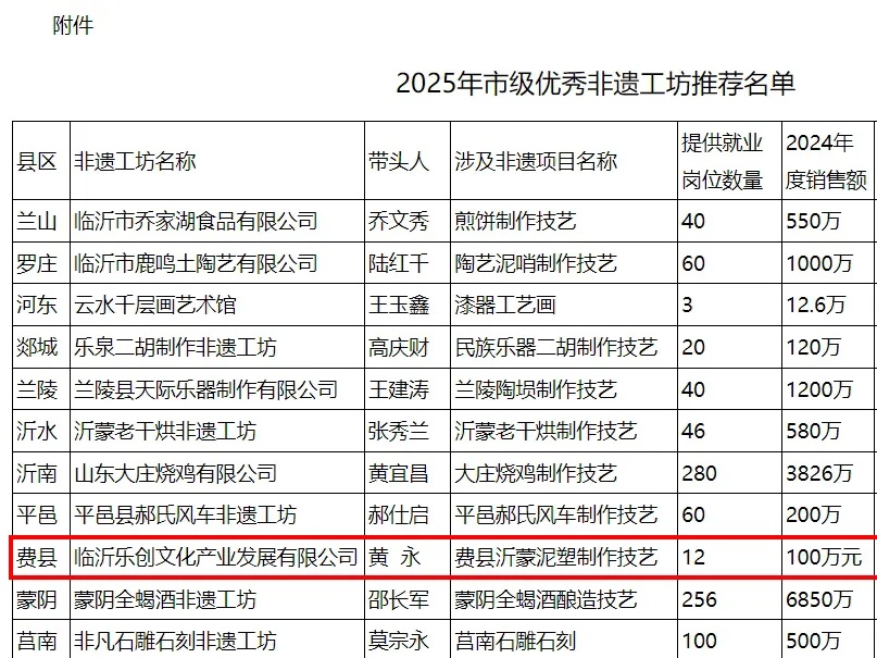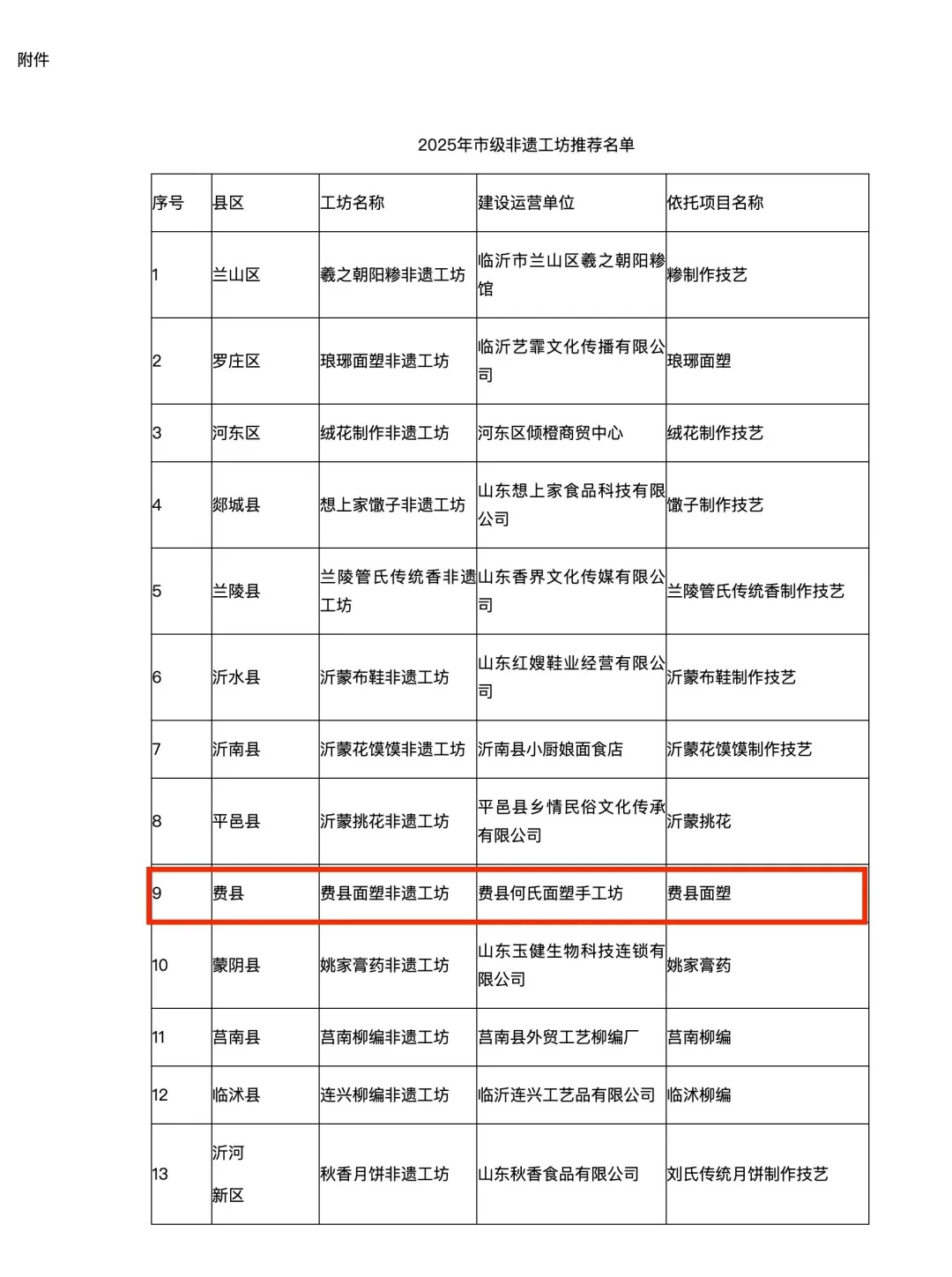 积极挖掘非遗项目,新增县级非遗项目109项、市级红色非遗项目2项,13处非遗传习驿站获市级认定,费县面塑非遗工坊获评2025年市级非遗工坊,沂蒙泥塑非遗工坊入选2025年市级优秀非遗工坊。