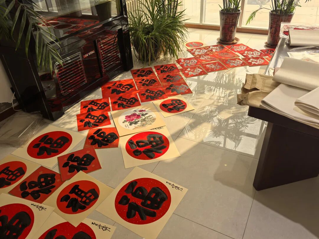 活动现场,墨香氤氲、暖意融融,老师们挥毫泼墨,笔走龙蛇间,一幅幅寓意新春吉祥、事业兴旺、阖家幸福的国画、吉语跃然纸上,一张张红彤彤、喜洋洋的福字鲜活灵动。